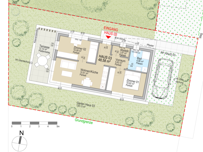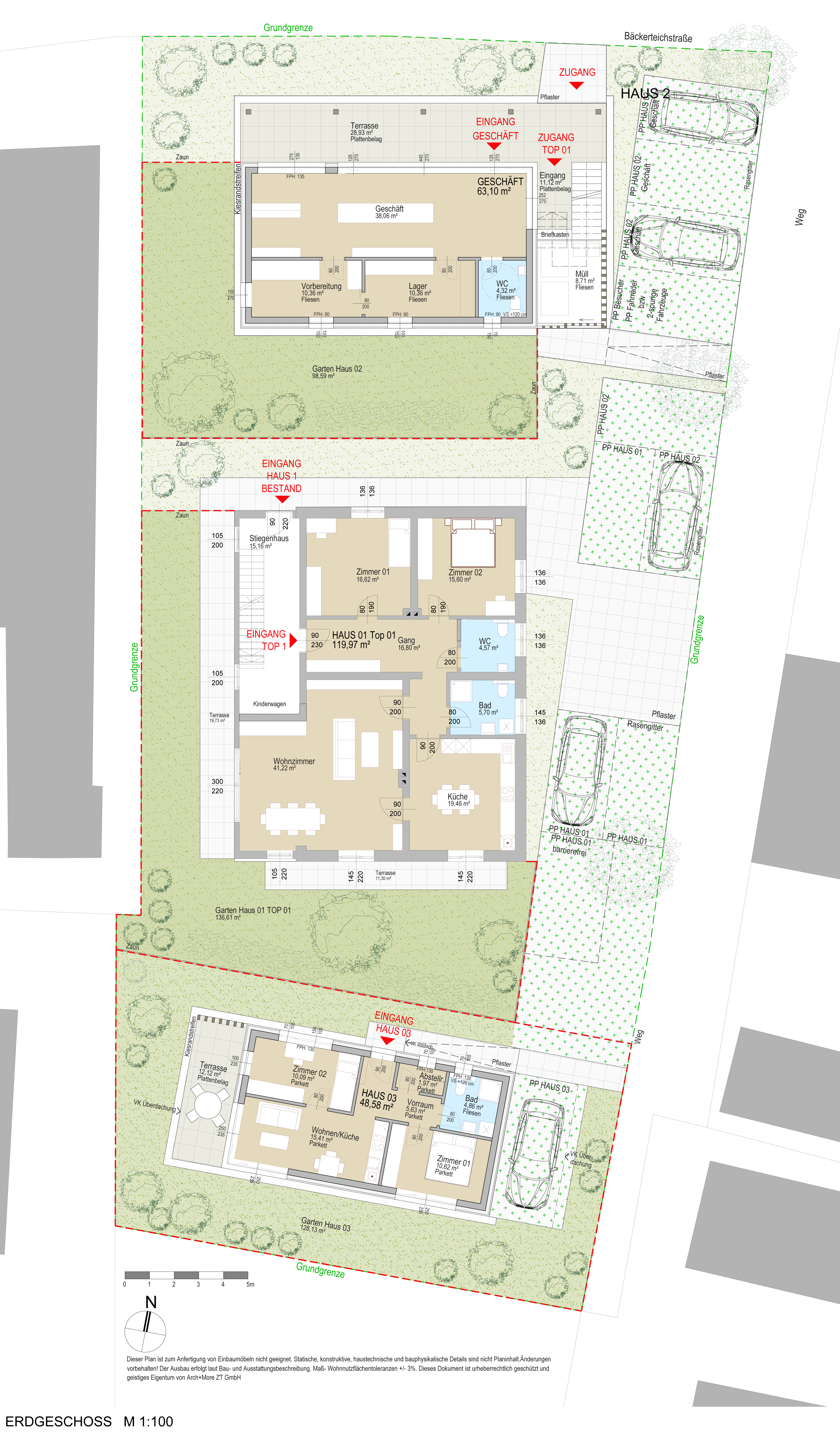 Die zugehörige Grundstücksfläche für TOP 1 beträgt ca. 395 m² davon knapp 137m² Garten.