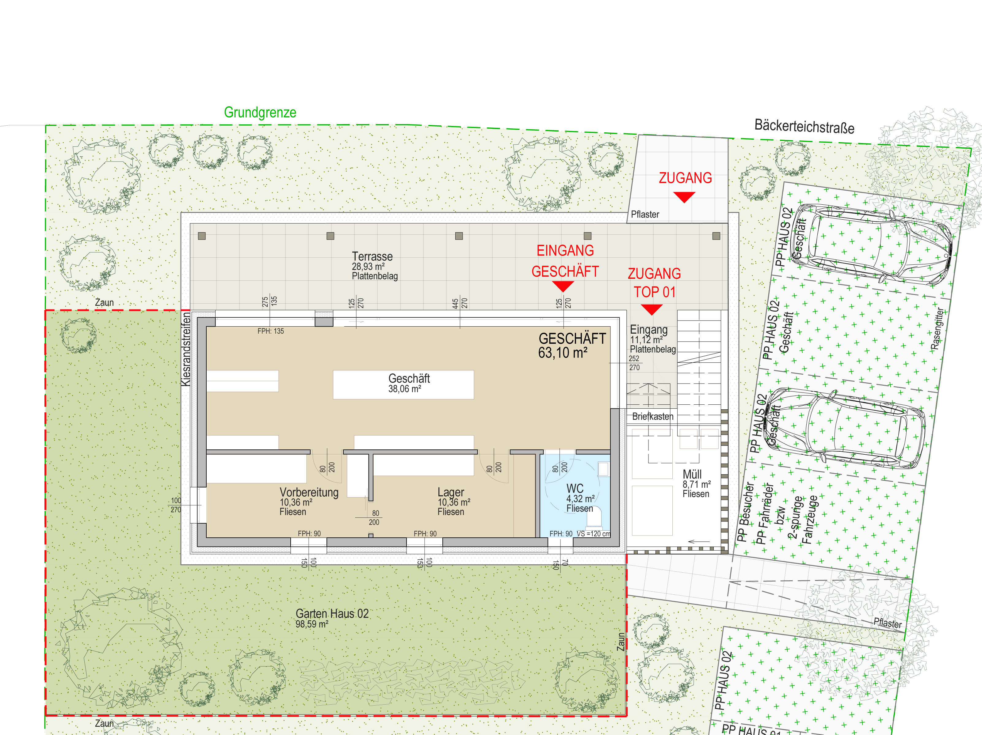 An der Bäckerteichstraße wird ein Wohn- und Geschäftshaus Geschäftsfläche/Wohnfläche im EG mit 68m2 und Wohneinheit im OG mit ca. 63 m² Wohnnutzfläche errichtet.