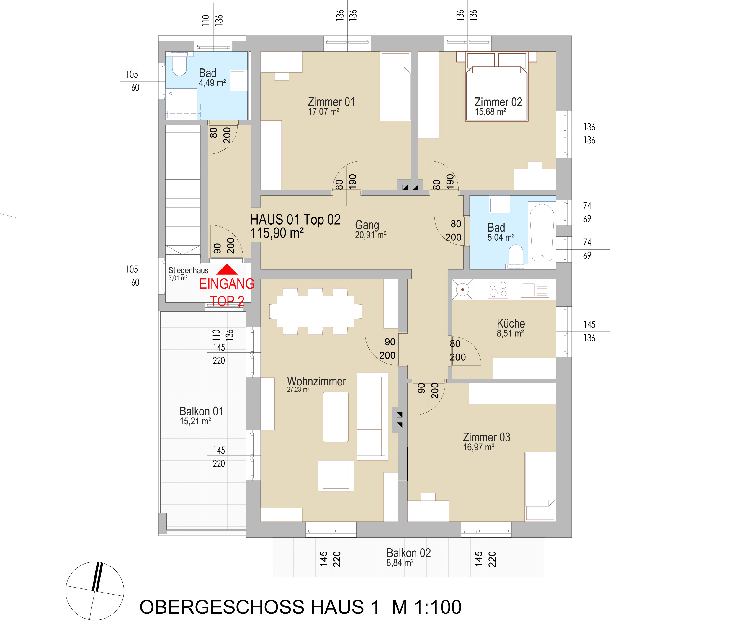 Obergeschoss – Wohnen (TOP 2 | ca. 63,10 m²)